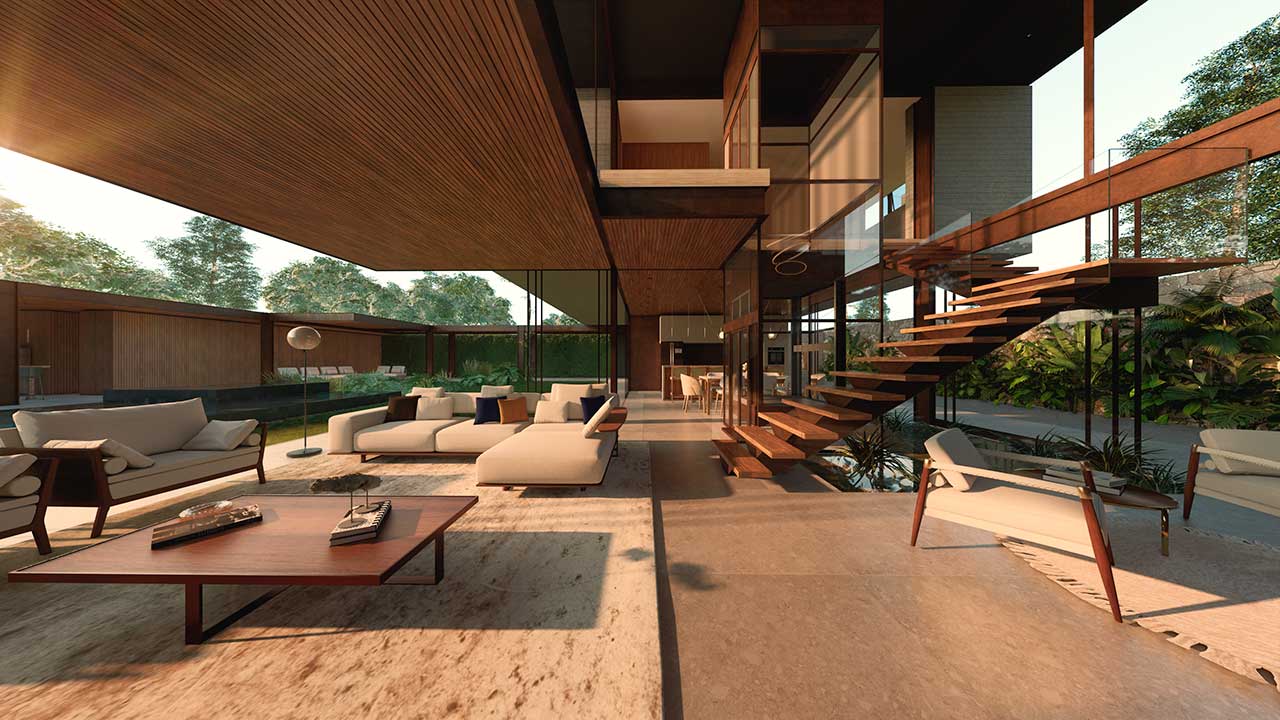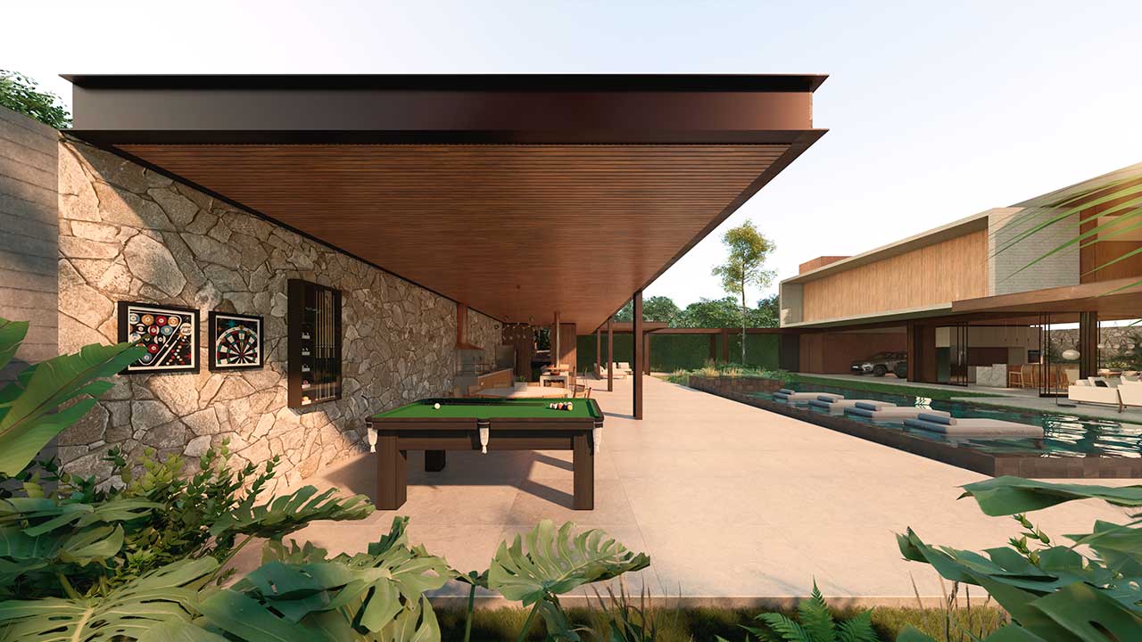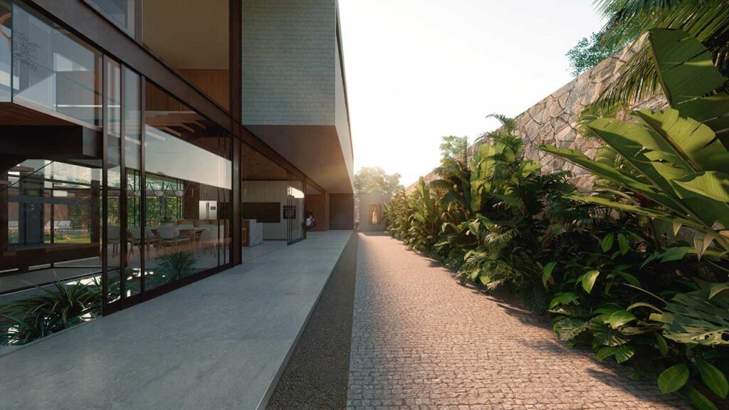 Espaços verdes internos e externos serão intercalados com áreas comerciais, criando uma sensação de equilíbrio entre natureza e urbanidade. Praças centrais com jardins verticais e espelhos d’água serão áreas de convivência que estimulam o relaxamento e encontros sociais. A diversidade de texturas, luzes e formas cria uma experiência sensorial completa, incentivando os visitantes a permanecerem por mais tempo.